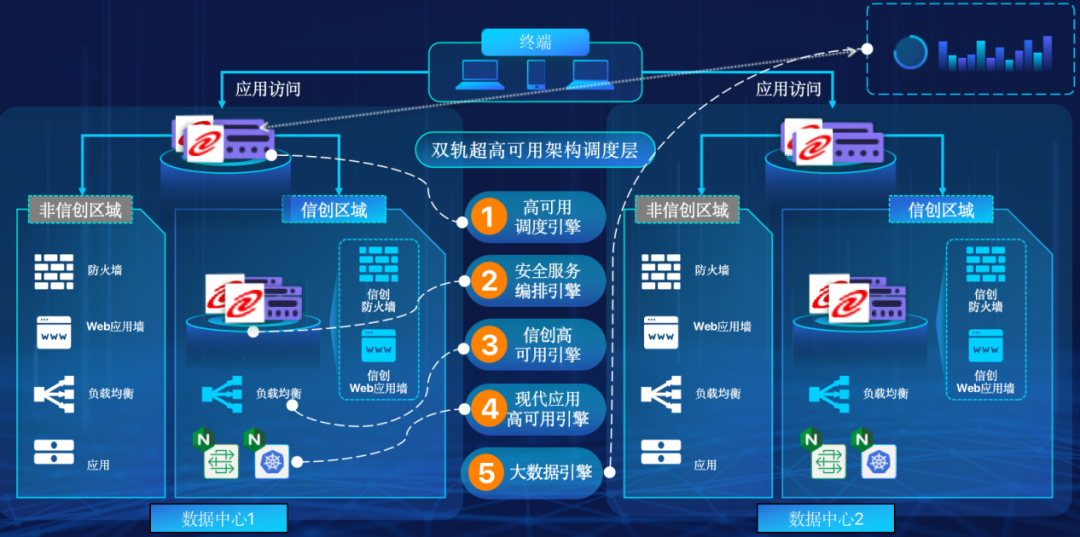 米兰·(milan)中国在企业面临自主创新IT基础重构过程中,推出的全新架构双轨超高可用架构(简称DTMAA),在双活数据中心的分区调度基础上,添加每个数据中心内信创域和非信创域的分域调度,来实现分区分域协同的多活双轨超高可用。